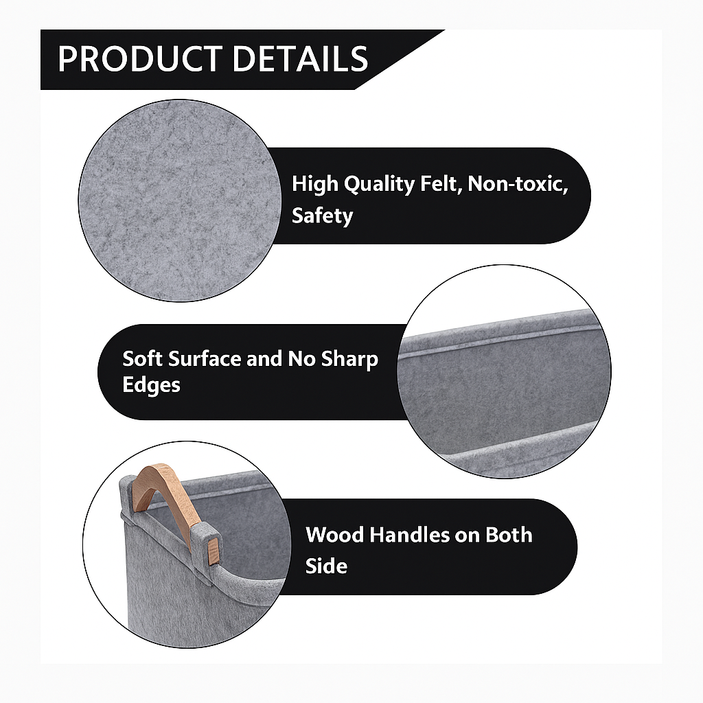 Say goodbye to scattered toys! This premium felt basket is perfect for storing your dog’s favorite toys, blankets, and accessories – all in one stylish spot.